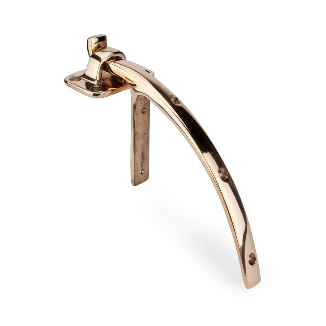 Four-piece polished bronze boarding ladder set, with optional hinges and spare eyes.
