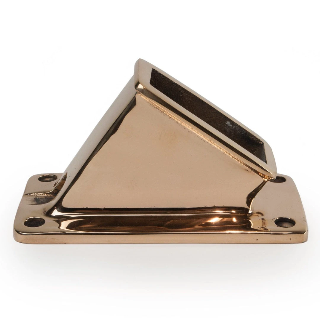 Solid, cast bronze fitting to securely hold square wooden boom crutches. Available in polished bronze or chrome plated.