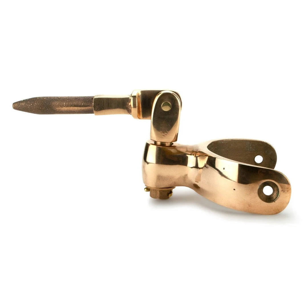 The bronze halfband and spike is a fixed gooseneck fitting for attaching the boom to the mast. Solid cast Bronze, two pivot points.