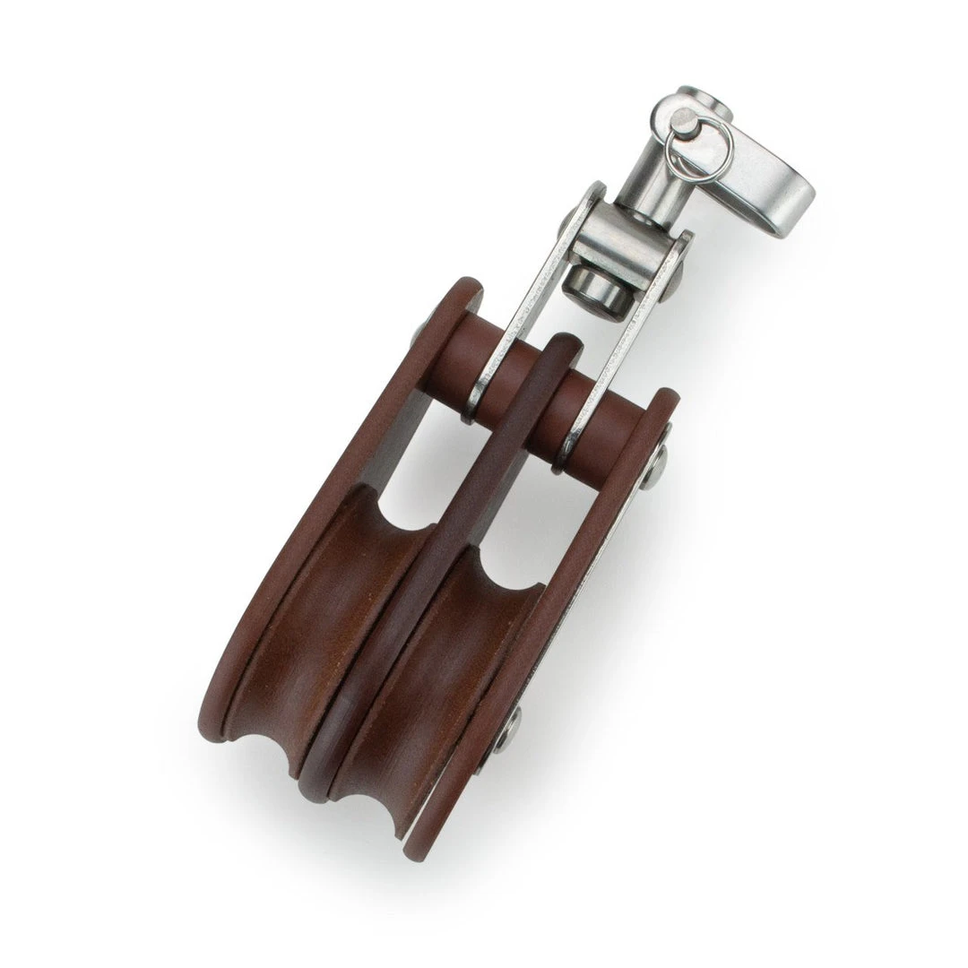 The double Tufnol block, fitted with a swivel bow, becket and cam cleat is for rope up to 16mm.