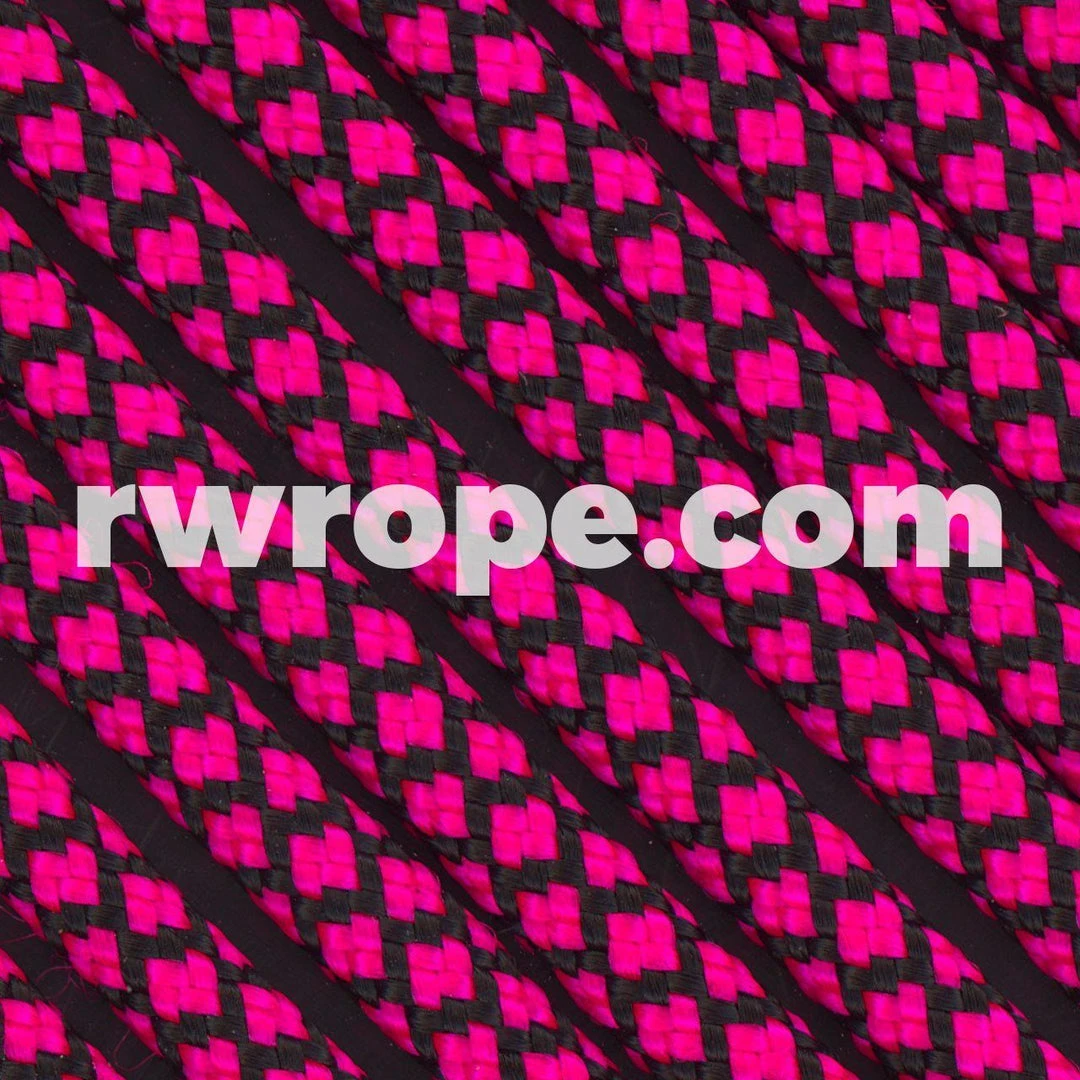 Solid paracord with a unique design. The neon pink is great for visibility. It’s a bit stiff at first but softens with use.