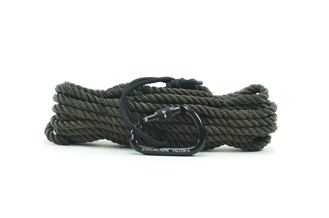 1) 7/16″ x 30′ Nylon 3 Strand GI Rappelling Rope (Rated minimum 5,600 lb test. Color: Olive Drab)