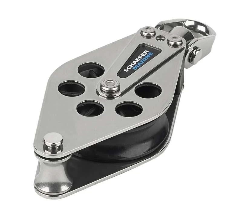 Single block with Stainless Steel cheeks and becket. Delrin™ sheaves ensure smooth operation and high safe working load. Removable becket allows for easy attachment of pre-spliced lines. Swivel head may be locked in place to eliminate twist.