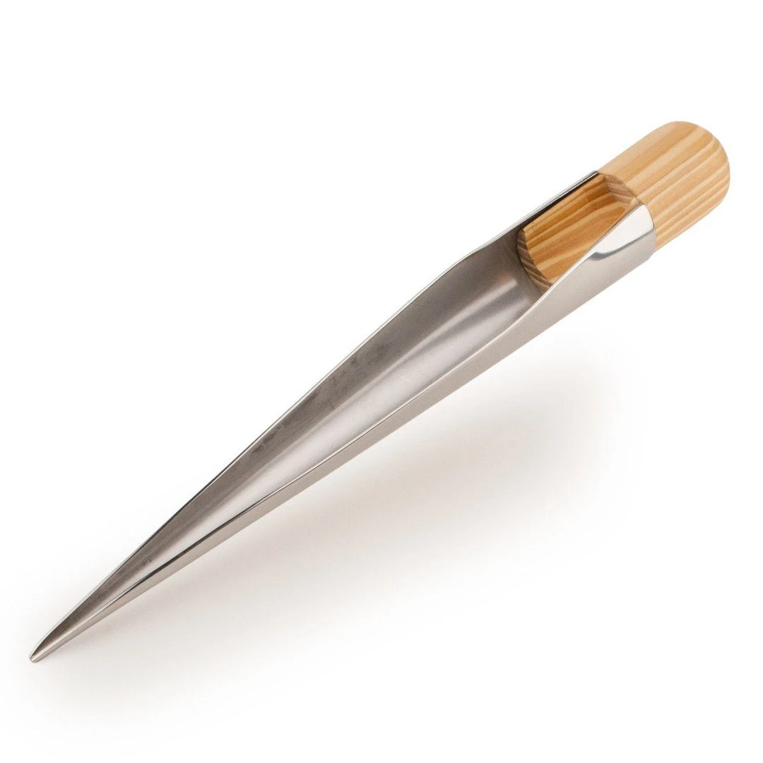 Solid stainless steel body with a wood haft securely attached with a stainless steel screw.